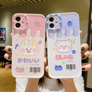 Ốp Điện Thoại Silicon Tpu Mềm Siêu Mỏng Bảo Vệ Toàn Diện Họa Tiết Dâu Tây/Thỏ/Gấu Cho iPhone 13 12 mini 11 Pro XS Max X XR 8 7 Plus