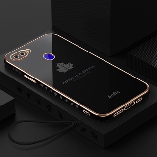 Ốp Điện Thoại Silicon Mềm Chống Rơi Họa Tiết Lá Phong Kèm Dây Đeo Dành Cho OPPO F9 A7X