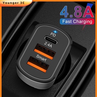 Củ Sạc Xe Hơi 3 Trong 1 Đa Chức Năng 4.2A 5V 20W Sạc Nhanh Cho Điện Thoại Android Type C