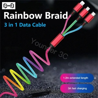 Dây Cáp Sạc Nhanh Usb Type-c 2.5A 3 Trong 1 Màu Cầu Vồng Cho Điện Thoại