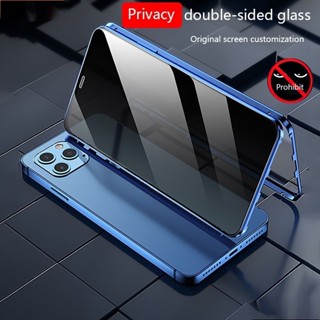 Ốp Điện Thoại Kính Cường Lực Hai Mặt Viền Kim Loại Nam Châm Cho iPhone 14 12 11 13 Pro XS Max XR iPhone 7 8 Plus SE