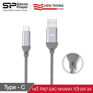 Cáp sạc nhanh Silicon Power Type-C Boost link LK30AC bọc nylon tối đa 3A dài 1m (Xám)
