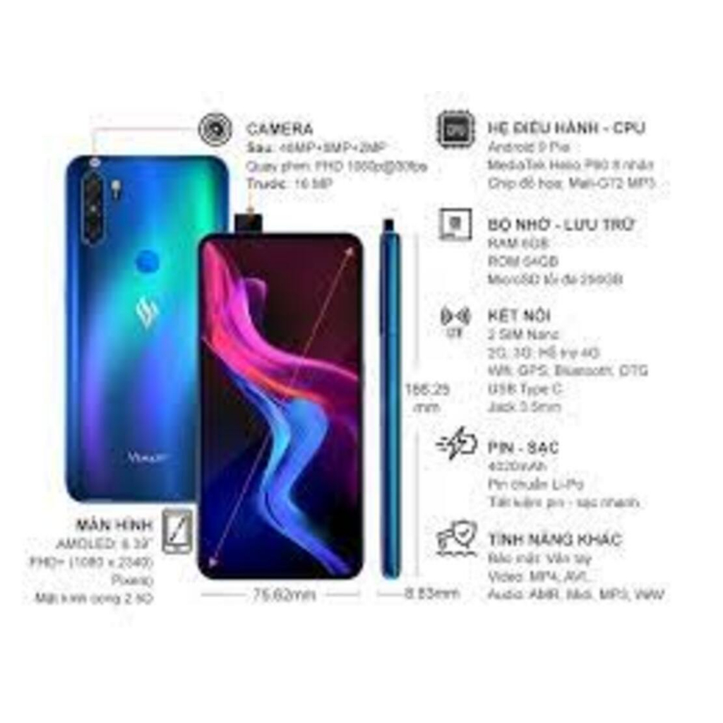 🛑 Lưu ý: Quý khách đừng ham mua điện thoại rẻ vì không có chiếc điện thoại nào giá rẻ mà "ngon" cả. không đáng bao nhiêu mà mua nhầm hàng kém chất lượng, hàng nhái, fake. Tiền nào của nấy nha mọi người (mua lầm, bán không lầm). Ai bán cũng nói hàng mình tốt và đẹp - Đến tận nơi - Xem tận mắt - Cầm tận tay 🔔Chỉ như vậy Mới đánh giá được ngoại hình, cũng như chất lượng của sản phẩm Mình tin rằng , Quý khách đến xem và test máy sẽ không thất vọng về dịch vụ cũng như sản phẩm của shop. Cấu hình Điện thoại Vsmart Active 3 (6GB/64GB) Màn hình: AMOLED6.39"Full HD+ Hệ điều hành: Android 9 (Pie) Camera sau: Chính 48 MP & Phụ 8 MP, 2 MP Camera trước: 16 MP Chip: MediaTek Helio P60 RAM: 6 GB Dung lượng lưu trữ: 64 GB SIM: 2 Nano SIM (SIM 2 chung khe thẻ nhớ)Hỗ trợ 4G Pin, Sạc: 4020 mAh15 W Cam kết chất lượng: Sản phẩm là Máy Chính hãng Sản Xuất. (shop không bán hàng Nhái, Fake, hàng Copy, kém chất lượng. Máy mới, Full Zalo, Facebook, Youtube, nghe gọi tốt, đặc biệt chơi Liên Quân-PUBG-Free Fire mướt. Quý Khách hàng vui lòng chọn đúng phân loại Sản Phẩm giúp Shop Ạ.