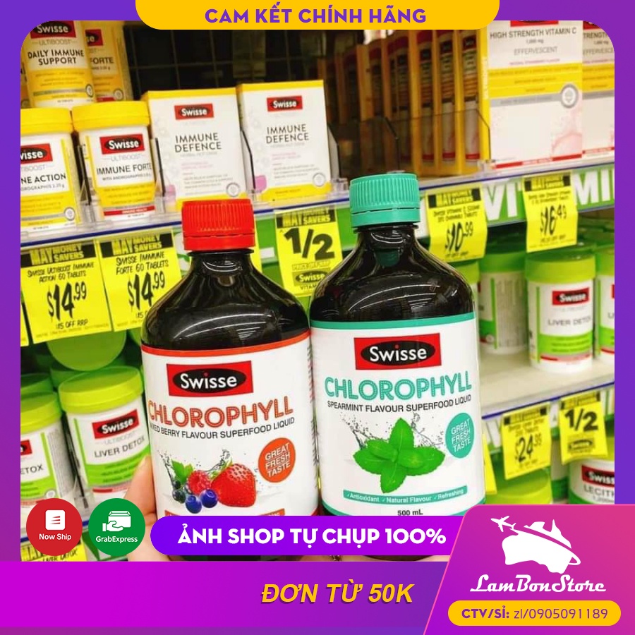 💎 Thông Tin Sản Phẩm: ♥ Tên sản phẩm: Nước diệp lục Swisse Chlorophyll ♥ Cách đóng gói: Chai 500ml ♥ Date: Mới nhất (Date thay đổi theo lần hàng về mới nhất) ♥ Hãng sản xuất: Swisse