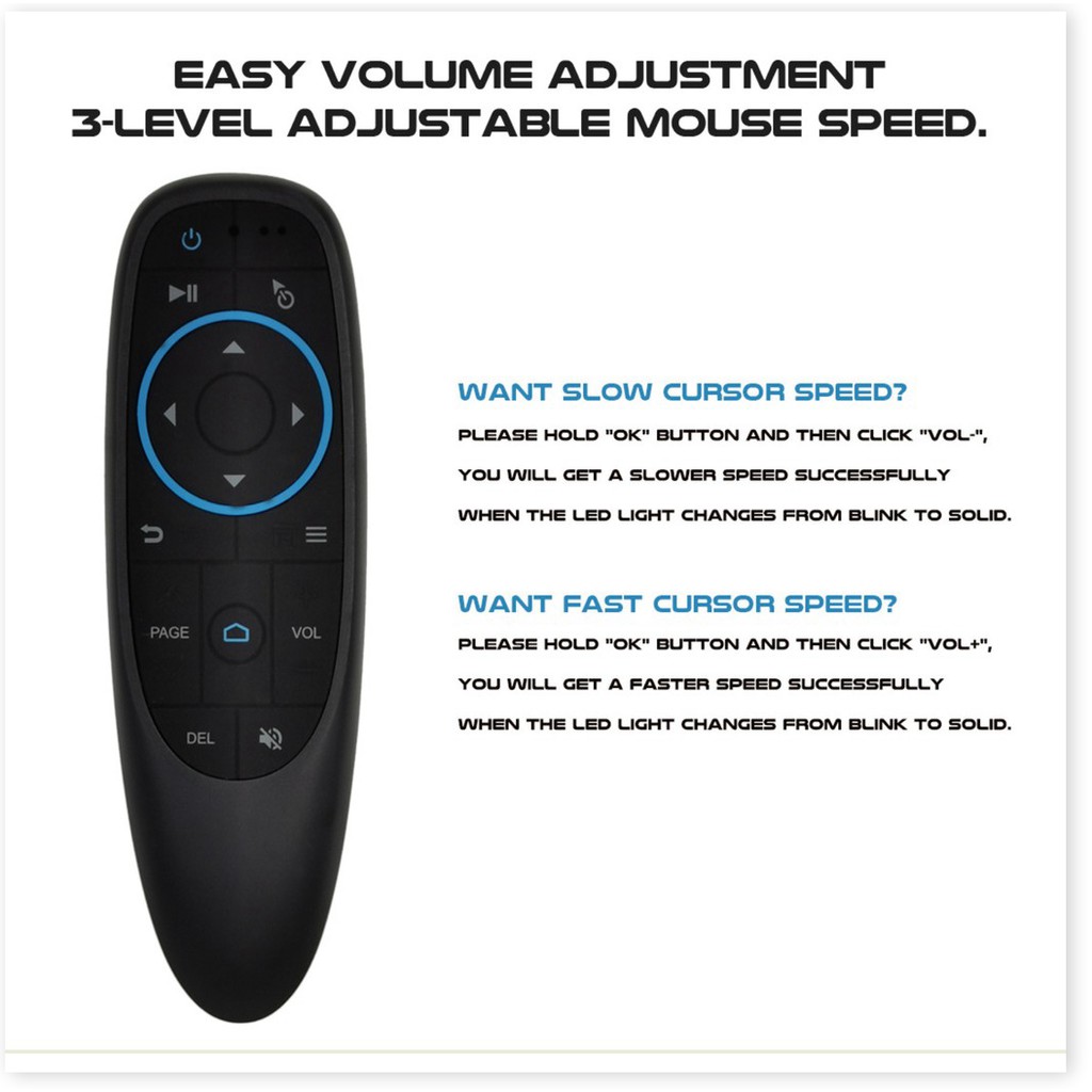 ✔ Chuột bay Q6/G10s là chuột bay có hồi chuyển con quay, không phải dạng điều khiển lên xuống và có chức năng voice search. Tuy nhiên, chức năng voice search này không tương thích với mọi đầu máy và tất cả hệ điều hành.