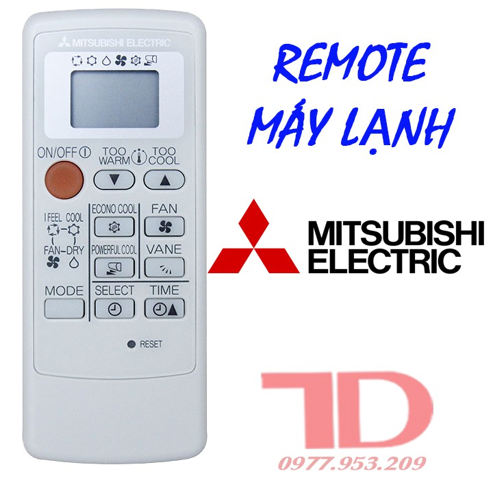 Điều khiển máy lạnh Mitshubishi Electric - mặt trắng sự dụng tốt cho máy lạnh Mitshu Electric Giá rẽ hơn rất nhiều so với mua tại trạm bảo hành chính hãng. Sử dụng full chức năng như một remote chính hãng thông thường. Rất thích hợp để mua dự phòng hoặc thay thế remote máy lạnh đã cũ, bàn phím bị lờn hoặc màn hình LCD bị ố. Thông tin sản phẩm: Điều khiển máy lạnh Mitshubishi Electric mặt trắng sử dụng cho các dòng máy lạnh Mitshubishi Electric từ 1hp - 3.0hp Sử dụng 2 pin AAA. Tên và các nút chức năng điều khiển của remote máy lạnh Mitshubishi Electric mặt trắng: 1. Nút ON/OFF: bật/tắt máy. 2. Nút ECONO COOL: bật chế độ tiết kiệm điện. 3. Nút POWER FUL: bật chế độ làm lạnh nhanh. 4. Nút MODE: chọn chế độ. 5. Nút điều chỉnh nhiệt độ. 6. Nút FAN: điều chỉnh tốc độ quạt. 7. Nút VANE: điều chỉnh hướng gió. 8. Nút SELECT: chọn kiểu hẹn giờ (bật/tắt). 9. Nút TIME: điều chỉnh giờ hẹn. Các thao tác trên điều khiển Bật/tắt máy: nhấn nút ON/OFF, sau đó nhấn nút MODE để lựa chọn chế độ hoạt động (tự động/làm lạnh/hút ẩm/quạt). Tiếp đó nhấn một trong 2 nút TOO WARM (giảm nhiệt độ) hoặc TOO COOL (tăng nhiệt độ) để điều chỉnh nhiệt độ. Nhấn nút ON/OFF một lần nữa nếu bạn muốn tắt máy. Bật chế độ tiết kiệm điện làm lạnh nhanh/tiết kiệm điện: Để bật chế độ tiết kiệm điện, bạn nhấn nút ECONO COOL. Máy sẽ tự động tăng nhiệt độ thêm 2 độ C và thổi gió lên xuống tự động để tạo cảm giác mát mẻ như bình thường. Nhấn lại một lần nữa để tắt chế độ. Để bật chế độ làm lạnh nhanh, bạn nhấn nút POWERFUL COOL, máy sẽ hoạt động với công suất và tốc độ quạt lớn nhất, chế độ sẽ tự tắt sau 15 phút. Nhấn lại một lần nữa để tắt chế độ. Bật chế độ hẹn giờ Bạn nhấn nút Select để chọn hẹn giờ bật, hẹn giờ tắt hoặc tắt chế độ hẹn giờ. Mỗi lần nhấn nút, biểu tượng sẽ thay đổi như sau: Bật chế độ hẹn giờ Trong đó, TIMER RELEASE là tắt chế độ hẹn giờ. Để thay đổi thời gian hẹn giờ, bạn nhấn nút TIME, mỗi lần nhấn sẽ tăng hoặc giảm 1 tiếng. MUA VẬT TƯ ĐIỆN LẠNH Ở ĐÂU ? (Ship COD toàn quốc) Cửa Hàng: Điện lạnh Thuận Dung Địa chỉ: 74/1B Nguyễn Du, P. Quang Vinh, TP. Biên Hòa, Đồng Nai Bảo Hành: 74/1B Nguyễn Du, P. Quang Vinh, TP. Biên Hòa, Đồng Nai. Hotline: 0977.953.209 (Zalo, Viber) Email: dienlanhthuandung@gmail.com