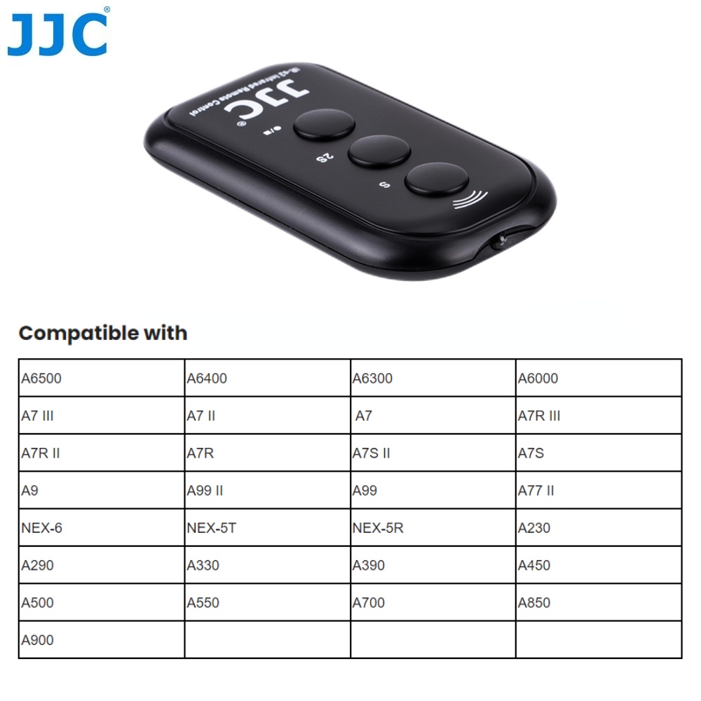 Điều khiển từ xa hồng ngoại JJC không dây cho máy ảnh Sony A6000 A6300 A6400 A6500 A7M3 A7M2 A7R3 A7R2 A7S2 A7R A7 III II III II A7S II A9 A99 II A77 II NEX-6 NEX-5T NEX-5R A900 A850 A700 A550 A500 A450 A390 A330 A290 A230 thay thế Sony RMT-DSLR1 RMT-DSLR2