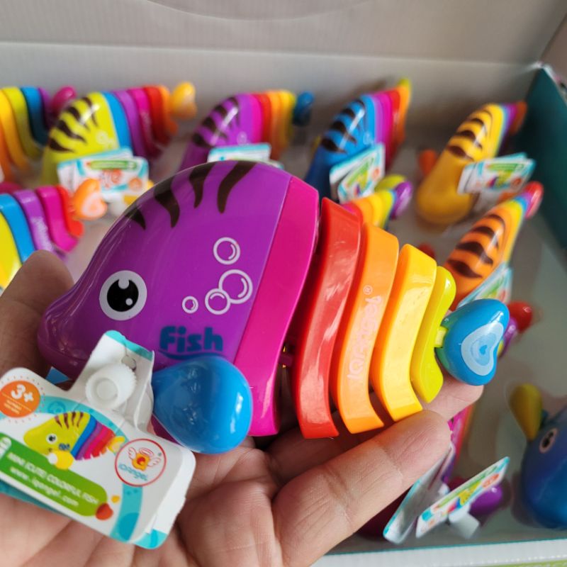ĐỒ CHƠI CÁ BƠI DÂY CÓT THÔNG TIN SẢN PHẨM Đồ chơi dây cót hình bộ xương cá với nhiều màu sắc sặc sỡ dễ thương Vặn dây cót con cá chạy lắc qua lắc lại cái đuôi đảm bảo bé sẽ rất thích