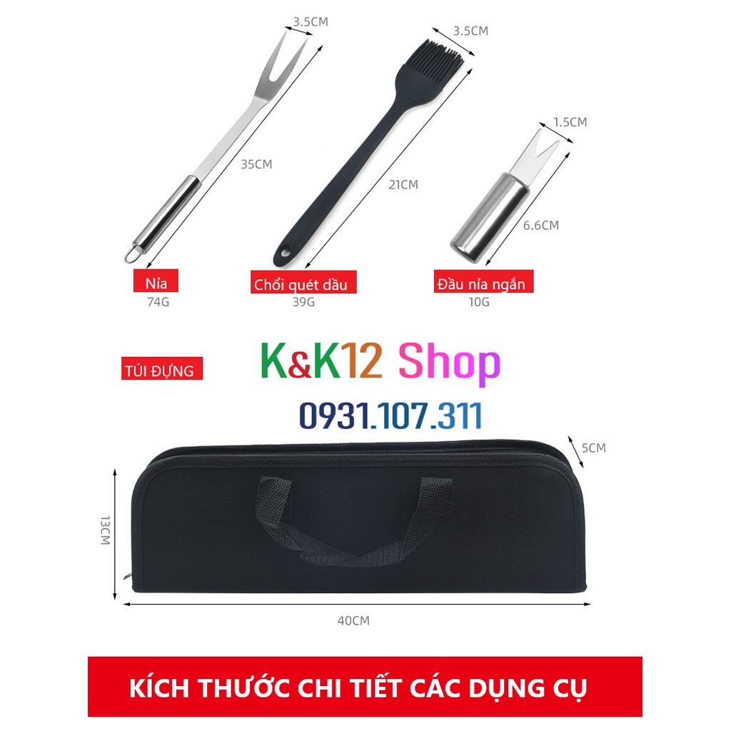 🔴 K&K12 Shop --- Cam kết sản phẩm giống như video và hình ảnh mô tả, quý khách hoàn toàn yên tâm khi mua và sử dụng sản phẩm. * Thời gian ship chỉ từ 2-5 ngày. Nội thành SG 2 ngày. ------------------------------------------------------------------- ➊ GIỚI THIỆU SẢN PHẨM * - Bộ dụng cụ BBQ tiện dụng được thiết kế nhỏ gọn, sắc xảo, chắc chắn có túi chứa tiện lợi giúp bạn lưu trữ, di chuyển dễ cách dễ dàng cho các buổi picnic ngoài trời, BBQ sân vườn hoặc tại nhà. Bộ dụng cụ BBQ tiện dụng là sản phẩm hữu ích cho nhà bếp của mỗi gia đình. ------------------------------------------------------------------- ➋ CHI TIẾT SẢN PHẨM * Tên sản phẩm: Bộ dụng cụ BBQ tiện dụng * Chất liệu: Thép không gỉ, túi vải chứa dụng cụ. * Trọng lượng và kích thước: - Bộ 3 món: 38,5 * 10,5 * 5cm 542g (bao gồm túi Oxford). - Bộ 5 món: 38,5 * 12 * 5cm 725g (bao gồm túi Oxford). - Bộ 7 món: 38,5 * 10,5 * 5cm 590g (bao gồm túi Oxford). - Bộ 9 món: 38,5 * 12 * 5cm 810g (bao gồm túi Oxford). - Bộ 20 món: 38,5 * 15 * 5 cm 1022g (bao gồm túi Oxford). * Màu sắc : Túi Oxford Đen ------------------------------------------------------------------- ➌ TÍNH NĂNG CỦA SẢN PHẨM : - Tiện dụng cho các buổi tiệc nướng BBQ ngoài trời gia đình hoặc các chuyến cắm trại, dã ngoại. - Làm quà tặng ấn tượng trong các dịp Tân Gia hay cho các gia đình. - Dễ dàng vệ sinh, lưu trữ và di chuyển. - Có nhiều loại: 3 món, 5 món, 7 món, 9 món, 20 món ( như hình mô tả) cho khách hàng lựa chọn. ------------------------------------------------------------------- 🔴 CHÍNH SÁCH - QUYỀN LỢI CỦA KHÁCH : * Nếu nhận hàng sai, bị lỗi sản xuất, bạn vui lòng nhắn tin trực tiếp đến K&K12 Shop, K&K12 Shop sẽ đổi hàng mới cho bạn. * Nếu khách hàng muốn trả sản phẩm, nhận lại tiền. K&K12 Shop sẵn sàng đổi trả, hoàn tiền cho khách hàng theo đúng quy định Shopee (Trong thời hạn 7 ngày kể từ ngày quý khách nhận hàng, sản phẩm phải chưa sử dụng, còn nguyên vẹn đầy đủ) * Trường hợp chấp nhận đổi trả miễn phí : thiếu hàng, sản phẩm không đúng mô tả, sản phẩm lỗi * Chúng tôi cam kết: - Sản phẩm giống như hình ảnh minh họa - Chuyển hàng toàn quốc, thanh toán khi nhận hàng. 📱Hotline 0931107311 ✪ Xin chân thành cám ơn quý khách đã tin tưởng và ủng hộ K&K12Shop !