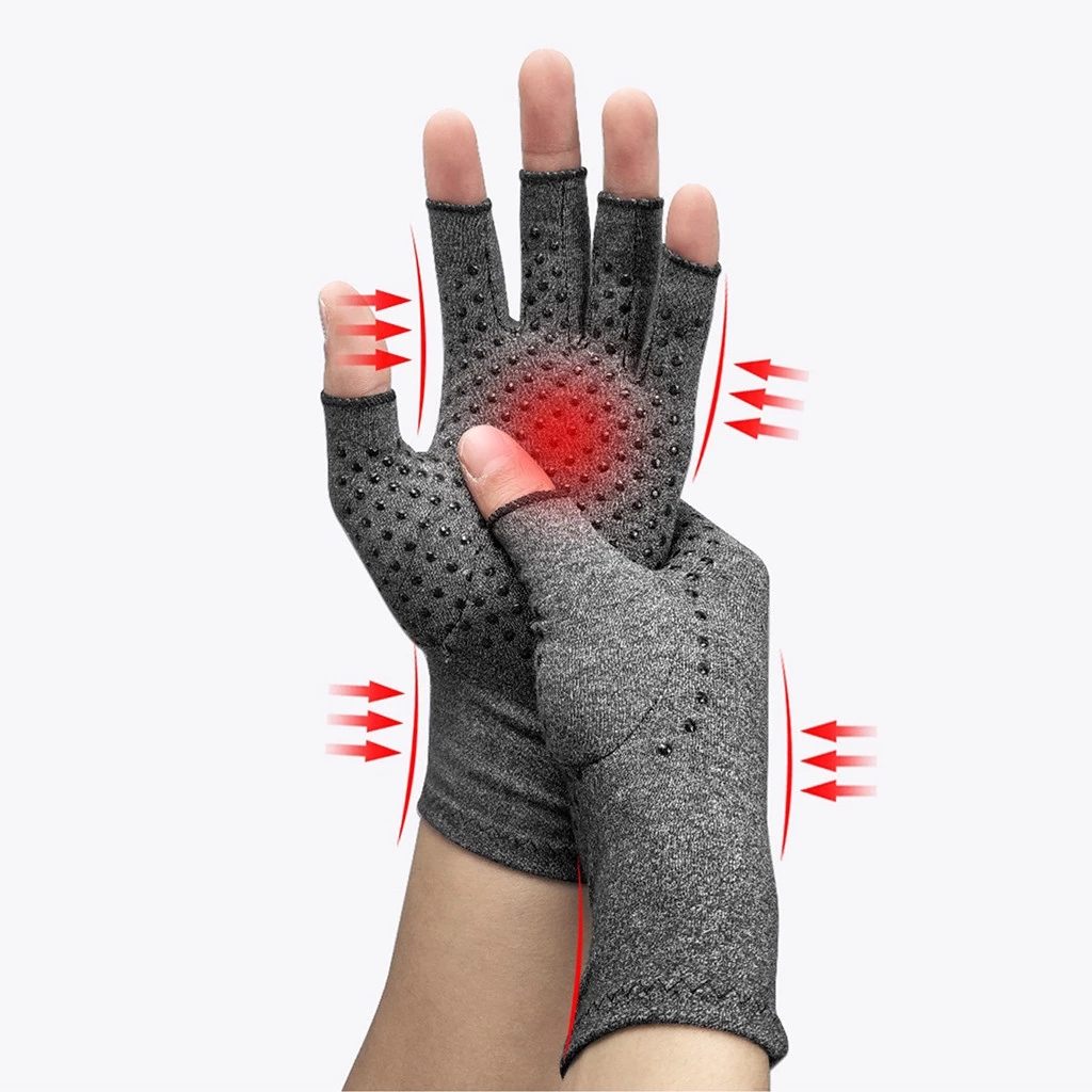 Đôi găng tay nén hở ngón chống trượt giảm đau khớp hỗ trợ chăm sóc sức khỏe/ phục hồi chức năng/ chơi thể thao trong nhà Tên sản phẩm: Găng tay hở ngón chống trượt chăm sóc sức khỏe Màu sắc: Xám đậm Công dụng: Chăm sóc điều dưỡng, luyện tập phục hồi chức năng, chống trượt Chất liệu: Cotton, spandex, silicon Kích thước: Size S 19x7cm (có co giãn) Size M 20x7,5cm (có co giãn) Size L 21X8cm (có co giãn) Số lượng: 1 đôi