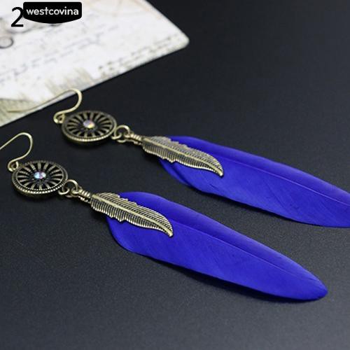 Phân loại: Khuyên tai thời trang nữ Chủ đề: Trang sức làm đẹp Dành cho: Nữ giới Chất liệu: Hợp kim, Lông vũ Kiểu dáng: Cổ điển Phù hợp cho: Các bữa tiệc, Đi du lịch v.v Đặc điểm: Mề đay khắc hình đính lông vũ dài, Đuôi móc Tổng chiều dài: 9cm / 3,54 "(xấp xỉ)