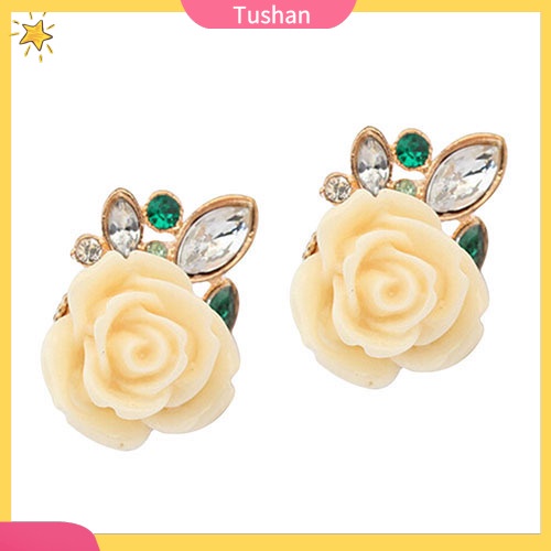Giới thiệu Đôi khuyên tai mặt hình hoa hồng đính đá nhân tạo phong cách retro thời trang dành cho nữ
