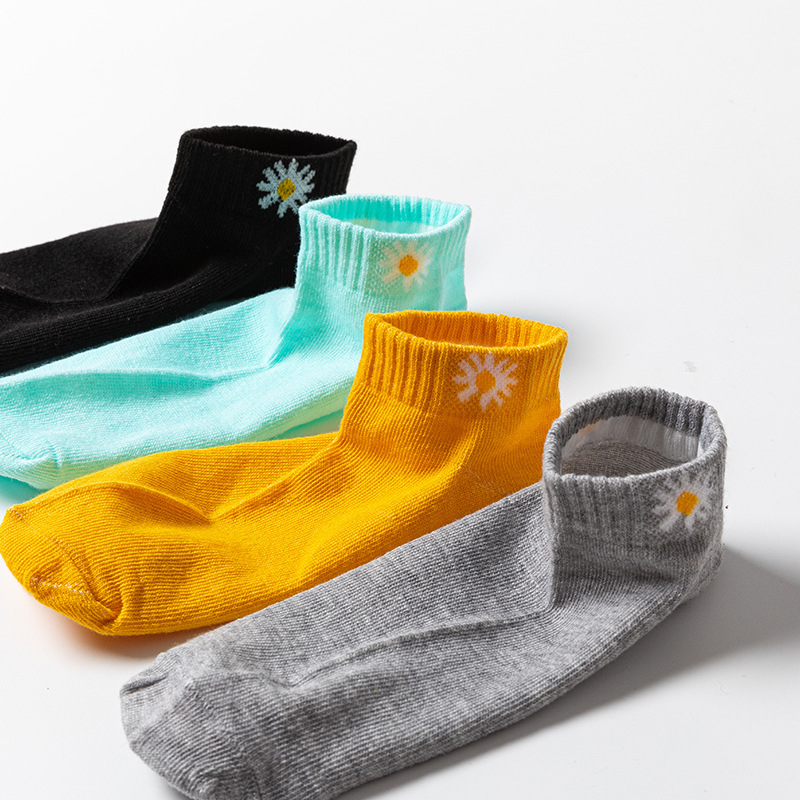 Độ tuổi phù hợp: Người trưởng thành Phong cách: Thời trang Dành cho: Nữ Mùa thích hợp: Mùa hè Họa tiết: Hoa cúc nhỏ Kích thước: Một kích thước Chất liệu: Cotton Đặc trưng: Thoáng khí, thấm mồ hôi, chống ma sát Màu sắc: Vàng, hồng, xanh lam, xám, đen Số lượng: 1 cặp