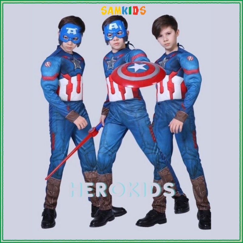 Đội trưởng mỹ hóa trang cho bé trai bộ quần áo trẻ em Captain đồ chơi hóa trang halloween độn bông COSPLAY2110
