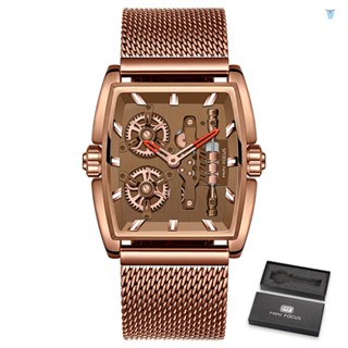 MINI FOCUS Đồng Hồ Thạch Anh Đeo Tay MINI Tập Trung Chống Nước Có Bánh Xe Xoay 3ATM Có Dây Đeo Thép Lưới Hiển Thị Thời Gian Kiểu Steampunk Cho Nam