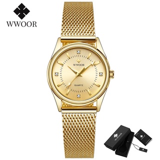 Đồng Hồ Quartz WWOOR Chất Liệu Thép Không Gỉ Mạ Vàng 8858