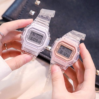 Đồng Hồ Báo Thức Điện Tử LED Vuông Trong Suốt Đa Năng Chống Nước Cho Nam Nữ Sinh Nam Nữ