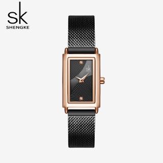 Đồng hồ đeo tay SHENGKE kiểu máy thạch anh dây bằng lưới thép phong cách công sở cho nữ