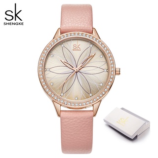 Đồng Hồ Đeo Tay Shengke Máy Thạch Anh Dây Đeo Da Sáng Tạo Cho Nữ