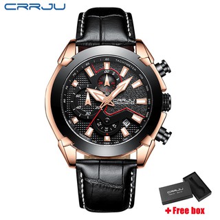 Đồng hồ thạch anh CRRJU 6015 dây da phong cách doanh nhân thể thao cho nam