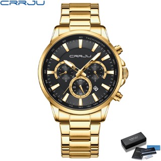 Đồng hồ thạch anh CRRJU 2270G Bằng Thép Không Gỉ Chống Nước Thể Thao Chống Trầy Thời Trang Giản Dị Dành Cho Nam
