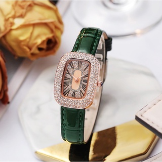 Đồng Hồ Đeo Tay Máy Quartz Đính Kim Cương Nhân Tạo Màu Xanh Lá Đơn Giản Cho Nữ
