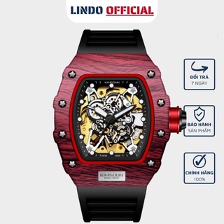 Đồng hồ cơ nam tự động automatic dây cao su chính hãng KIMSDUN K-523A lộ máy sang trọng cao cấp