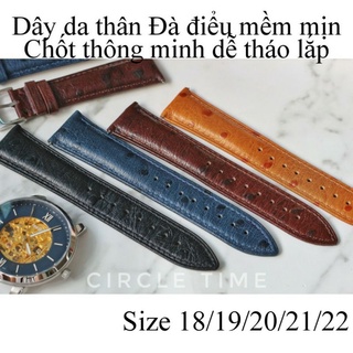 Dây đồng hồ da thân đà điểu size 18/19/20/21/22 chốt thông minh