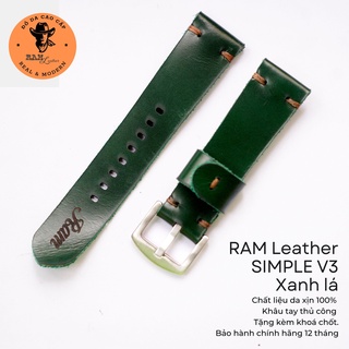 Dây đồng hồ da bò màu xanh rêu - RAM Leather Simple V3 Bền Đẹp