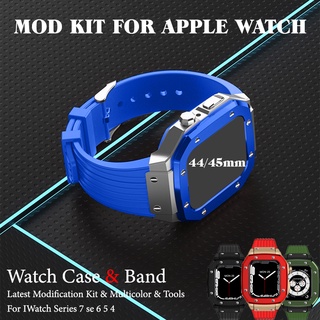 Dây Đeo Đồng Hồ Bằng Silicone Và Kim Loại Cho Apple Watch 7 SE 6 5 4 Band 44mm 45mm