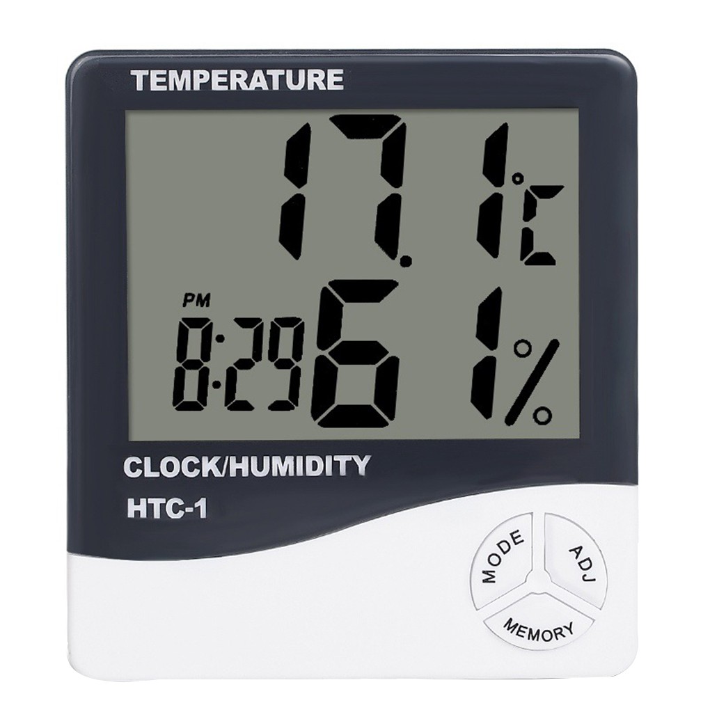 Description This multifunctional humidity thermometer can display temperature, humidity and time simultaneously. Digital LCD thermometer humidity is specially designed with memory of max min measuring value. Clock humidity thermometer features with 12-hour or 24-hour displaying system selectable. This practical humidity thermometer has multi uses, including clock, alarm and calendar function(month and date). Application: digital LCD thermometer humidity is suitable for desk-top placing or wall hanging. Specification: Type: humidity thermometer. Size: 9.5cm*10.5cm. Color: as pictures show. Material: ABS. Temperature range: -10-50℃. Humidity range: 10%-99% RH. Temperature accuracy: ±1℃. Temperature resolution: 0.1℃. Humidity accuracy: ±5% RH (40%-80%). Power supply: 1*AAA battery(not included). Note: There might be a bit color distortions due to different computers resolutions. There might be slight errors due to different hand measurements. Package included: 1* Humidity thermometer(battery is not included). 1* User manual.