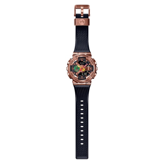 Một phiên bản giới hạn mới được ra mắt Giới thiệu chiếc đồng hồ G-SHOCK thứ hai mang đặc trưng của Rui Hachimura. Đến với thế giới tương lai của những chiếc đồng hồ góc cạnh, cứng cáp với chiếc đồng hồ đặc trưng lấy cảm hứng từ cầu thủ bóng rổ chuyên nghiệp Rui Hachimura. Bước đột phá mới trong thiết kế đồng hồ với đường gờ được rèn bằng kim loại, chiếc đồng hồ này sở hữu bảng màu riêng biệt cho các mẫu cơ bản, kết hợp với mẫu đồng hồ GM-110 kim-số phủ kim loại tạo nên dòng đồng hồ vô cùng độc đáo. Thiết kế bắt đầu với phần vỏ, vòng dây kim loại và khóa mạ ion bằng đồng sáng bóng, sau đó thêm màu vàng, xanh lá và đỏ, màu sắc dân tộc của đất nước Benin, quê nội của Hachimura, vào kim, mặt số và vòng dây bằng vải. Chuyển đổi giữa các dây đeo đồng hồ — màu đen cổ điển làm cho lớp vỏ đồng đỏ trở nên thật sự nổi bật, hoặc họa tiết vải kente * vô cùng đặc biệt. Logo cá nhân của Hachimura, kết hợp giữa chữ tiếng Nhật 八 có nghĩa là số 8 với thanh kiếm Nhật, được khắc trên vòng dây đeo bằng kim loại và mặt sau của vỏ đồng hồ.