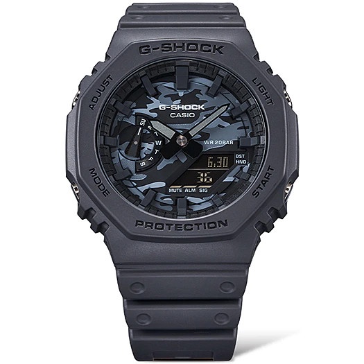 Một chiếc đồng hồ đồng hành cùng bạn trên mọi nẻo đường từ ngoài trời hoang dã đến trong thành phố, với màu sắc vừa phải phù hợp với mọi nơi. Có họa tiết ngụy trang G-SHOCK nguyên bản trên mặt số.