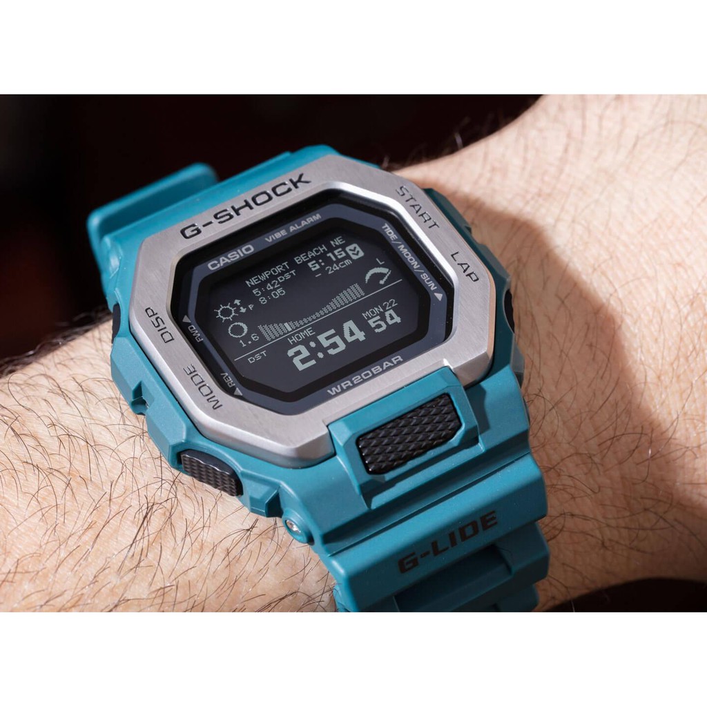 Các mẫu mới này là những sản phẩm bổ sung mới nhất cho dòng đồng hồ thể thao G-SHOCK G-LIDE, vốn là lựa chọn yêu thích của các vận động viên lướt sóng hàng đầu thế giới. Các mẫu đồng hồ này có khả năng hiển thị thông tin theo nhu cầu của vận động viên lướt sóng (thời gian và mức thủy triều cao và thủy triều thấp) và sử dụng ứng dụng điện thoại để dễ dàng lựa chọn một trong khoảng 3.300 vị trí trên khắp thế giới. Mặt đồng hồ lớn và LCD MIP (Memory In Pixel) độ phân giải cao cải thiện khả năng hiển thị các chức năng tiêu chuẩn như Đồ thị thủy triều, Dữ liệu tuần trăng, thời gian mức thủy triều cao và thủy triều thấp và thời gian sáng và tối. Điều này cung cấp thông tin quan trọng về các điều kiện hiện tại trong nháy mắt, và cùng với bộ chức năng đo quá trình tập luyện (khoảng cách, tốc độ, nhịp độ, vòng chạy, cường độ) hỗ trợ cho các vận động viên lướt sóng trên toàn thế giới đương đầu với những thử thách mới. Ngoài các chức năng mạnh mẽ, các mẫu đồng hồ mới này còn kết hợp nhiều cải tiến trong thiết kế, cấu trúc và vật liệu. Gờ của các mẫu này được làm từ nhựa và kim loại cho phép chịu tác động của đá tốt hơn khi ở dưới nước. Bề mặt gờ được phủ thép không gỉ với lớp phủ hoàn thiện mảnh và được mài giũa mang lại vẻ ngoài mạnh mẽ tinh tế. Cấu trúc bảo vệ bằng nhựa bảo vệ khỏi các lực tác động từ mọi hướng kết hợp với bộ phận bảo vệ nút tại vị trí 6 giờ cho khả năng bảo vệ G-SHOCK vượt trội. Đầu dây đeo bằng uretan mềm tại vị trí 6 giờ có các khe hở cho phép thoát nước và mồ hôi để cải thiện sự thoải mái.
