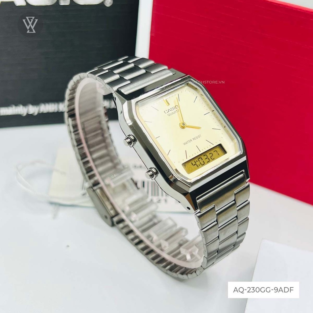 Đồng Hồ Quartz Unisex Casio WATCHSTORE AQ-230GG-9ADF Thiết Kế Mặt Kính Nhựa 30mm, Dây Đeo Kim Loại, Vỏ Thép Không Gỉ