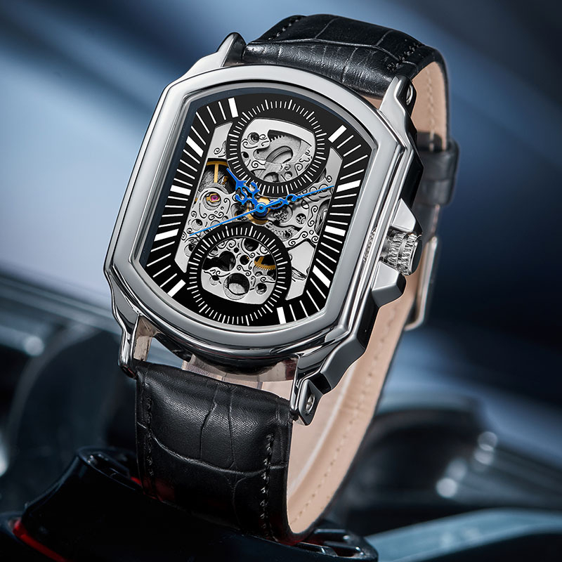 Giới thiệu Đồng Hồ Cơ Hình Chữ Nhật Với Dây Đeo Da, Chống Thấm Nước