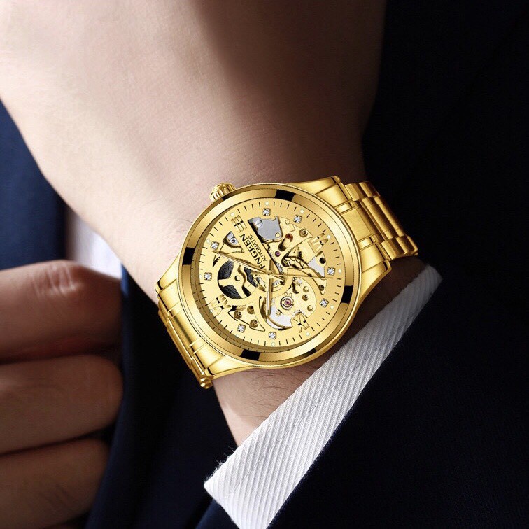 Giới thiệu Đồng Hồ Cơ Nam Fngeen 6018 Đính Đá Sang Trọng Chống Nước, bảo hành 12 tháng