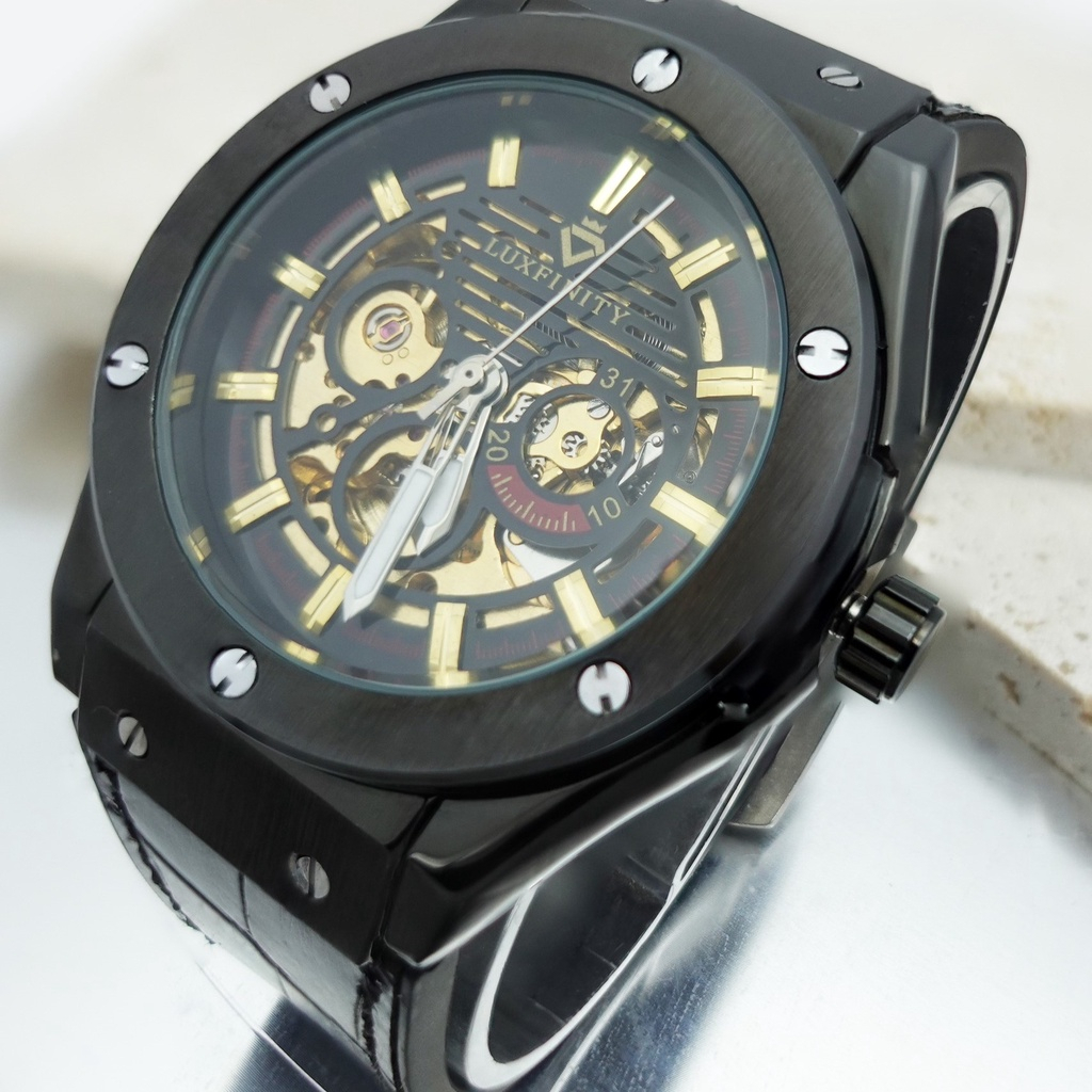 Giới thiệu Đồng hồ cơ nam tự động Luxfinity, đồng hồ cơ automatic dây da thiết kế viền thép sang trọng, mặt sapphire