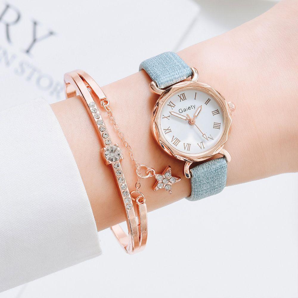 Gói bao gồm '1xQuartz Watch & 1 x Bracelet Đồng hồ nữ Đồng hồ đeo tay thạch anh Đồng hồ thạch anh Đồng hồ đeo tay bằng da tinh tế Đơn giản Thời trang Phong cách đơn giản Món quà thông thường Mới