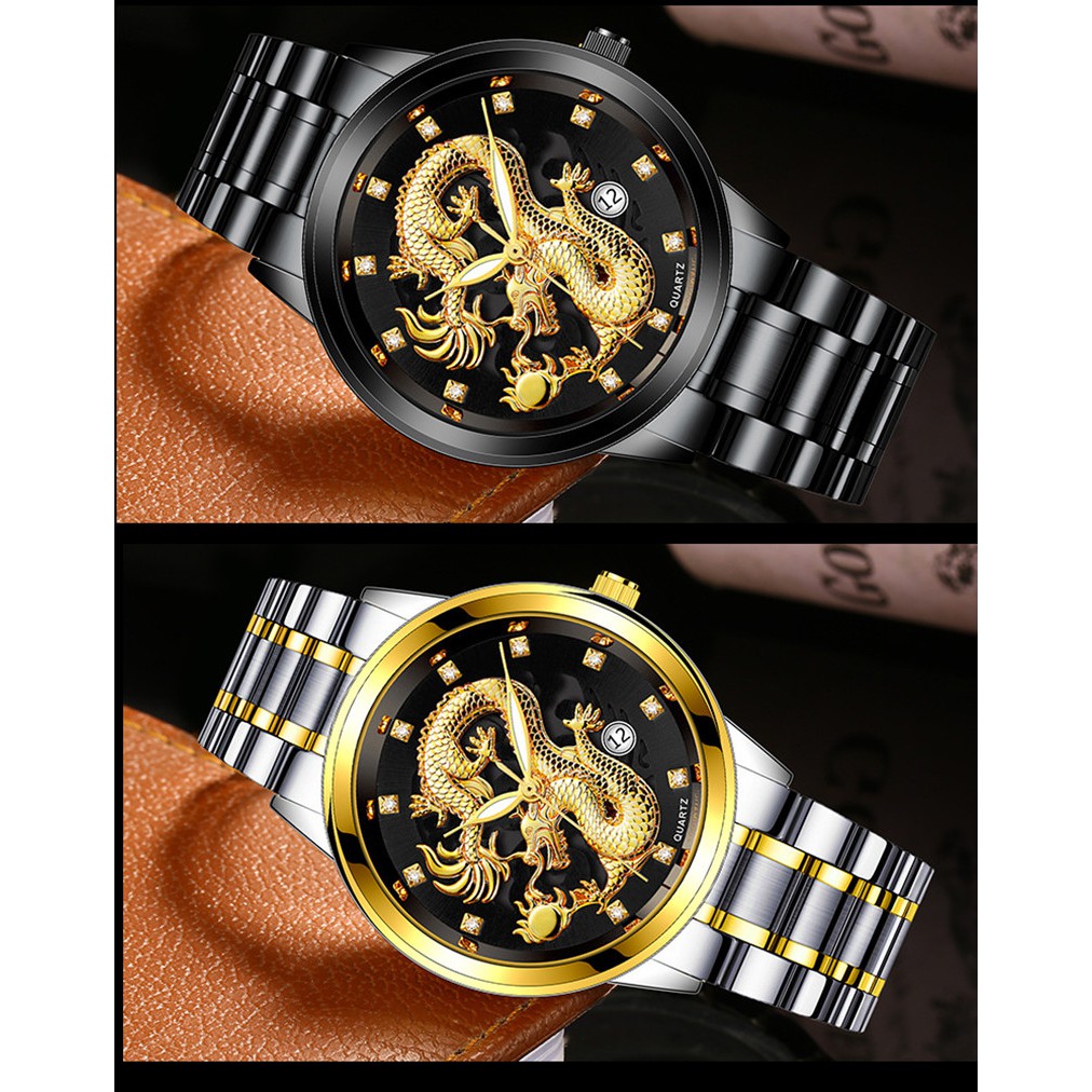 Video giới thiệu sản phẩm Đồng hồ đeo tay dây kim loại mặt rồng sang trọng có hiện ngày/lịch cao cấp thời trang cho nam. Nguồn: Shopee.