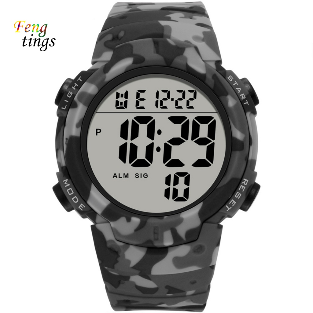 Tên khoản mục: Đồng hồ kỹ thuật sốChất liệu: Cao su, Hợp kim Kiểu dáng: Thể thao Loại màn hình: Kỹ thuật số Chống thấm nước Nguồn: 1 x Pin nút (Bao gồm) Người áp dụng: Trẻ em / Sinh viên Tính năng: LED, Sáng, Màn hình lớn Chi tiết kích thước: 26cm x 4,75cm / 10,24 "x 1,87" (Xấp xỉ)
