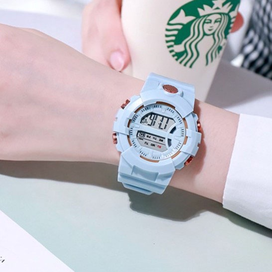 Mô tả sản phẩm Dành cho: nam, nữ, trẻ em Chất liệu dây đeo: Silicone Máy đồng hồ: Kỹ thuật số Loại móc khóa: Khóa Không thấm nước: không thấm nước trọn đời Tính năng: Báo thức, ngày, dạ quang, hẹn giờ, hiển thị 12/24 giờ