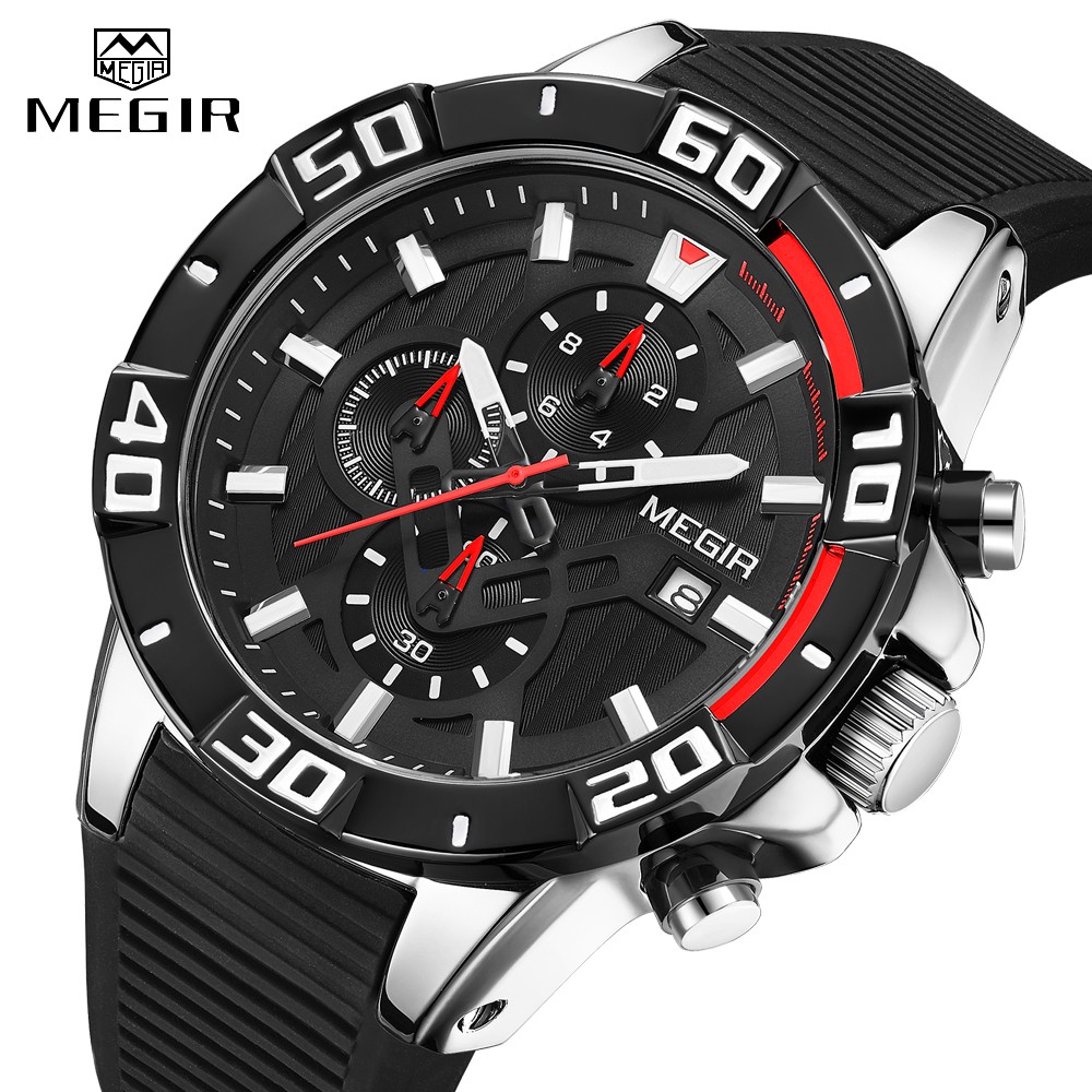 Giới thiệu Đồng Hồ Đeo Tay MEGIR 2121 3 Thanh Silicone Chống Nước Dành Cho Nam