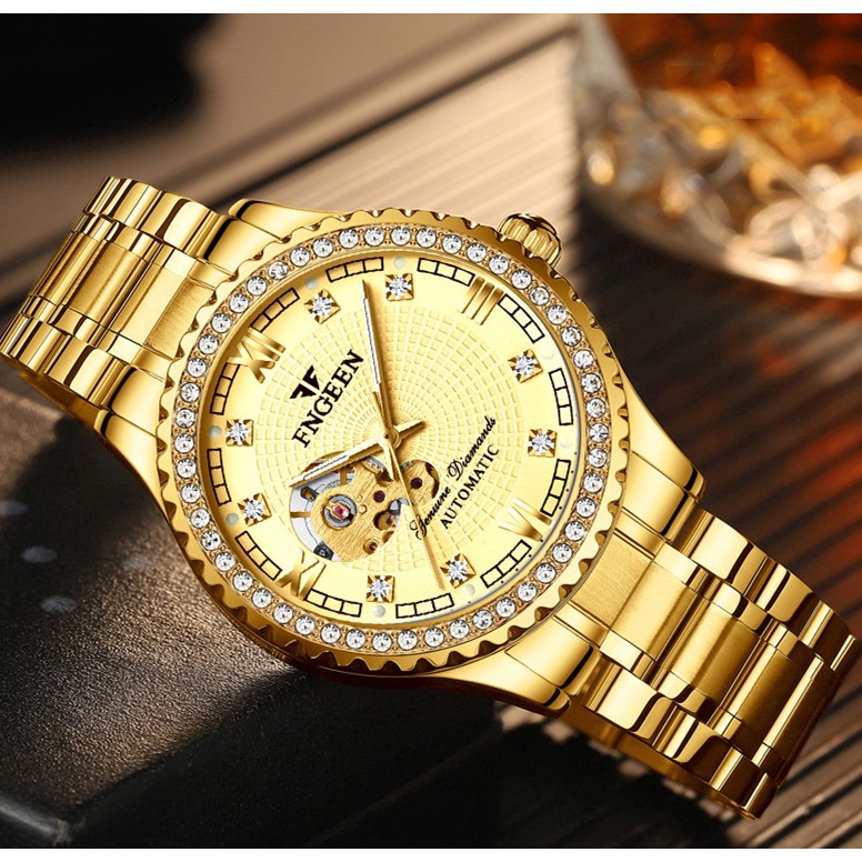 Giới thiệu Đồng hồ đeo tay nam, đồng hồ nam chính hãng FNGEEN máy cơ, đính kim cương nhân tạo, siêu sang, cực kỳ đẳng cấp