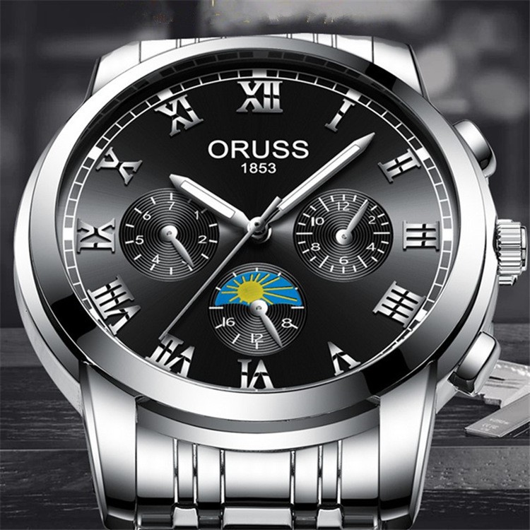 Giới thiệu Đồng hồ đeo tay nam, đồng hồ nam chính hãng ORUSS cao cấp, phong cách doanh nhân, mặt tròn không thấm nước