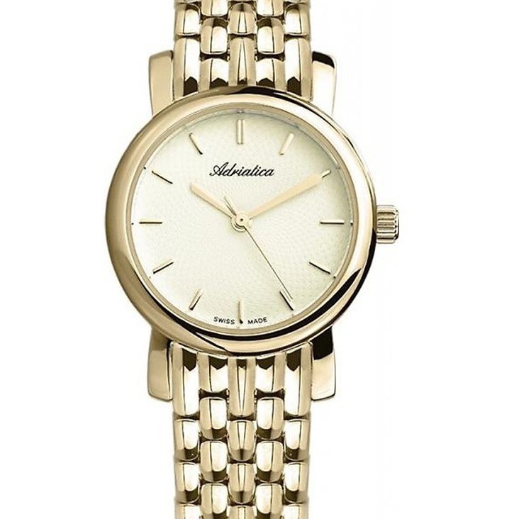 Đồng hồ Adriatica đặc biệt chú trọng đến chất lượng của những sản phẩm do mình sản xuất ra. Đồng thời cũng rất ưu tiên về mẫu mã, kiểu dáng để bắt kịp với xu thế của thời đại cùng như tâm lý của người tiêu dùng. Mặt số đơn giản nhưng đầy tinh tế. Dây đồng hồ được tạo nên từ nhiều chất liệu khác nhau mang lại nhiều sự lựa chọn đa dạng cho khách hàng. *Thương hiệu: Nhãn hiệu đồng hồ Adriatica ra đời vào năm 1931 tại thị trấn Montelier Thụy Sĩ. Đồng hồ Adritatica được biết đến với độ chính xác, chất lượng, độ tin cậy tuyệt đối và là sự lựa chọn tuyệt vời nhất dành cho khách hàng. Chính vì thế mà hiện nay đồng hồ Adriatica đã có mặt trên hầu hết các quốc gia của khu vực châu Âu, châu Á, Bắc Mỹ, Ấn Độ và Trung Đông. Adriatica còn tự hào rằng chính họ là thương hiệu Thụy Sĩ phát triển mạnh mẽ nhất trong nhiều năm trở lại đây. *Mô tả sản phẩm : Thương Hiệu: Adriatica Số Hiệu Sản Phẩm: A3464.1111Q Xuất Xứ: Thụy Sĩ Giới Tính: Nữ Kính: Mineral Crystal (Kính Cứng) Máy: Quartz (Pin) Bảo Hành Quốc Tế: 2 Năm Đường Kính Mặt Số: 28 mm Bề Dày Mặt Số: 8 mm Chất Liệu Vỏ: Thép Không Gỉ Dây Đeo: Thép Không Gỉ Màu mặt số : Vàng Chống Nước: 3 ATM - Đồng hồ Adriatica được thiết kế với nhiều màu sắc đa dạng . - Mặt đồng hồ được tạo nên từ những chi tiết độc đáo , mặt kính có độ cứng khá, không lóa mắt khi xem giờ dưới nắng.Kim đồng hồ rõ ràng sắc nét được trao chuốt từ những chi tiết nhỏ nhất. - Dây đeo của đồng hồ được làm bằng da , dây vải dù hoặc thép không gỉ đây là những chất liệu vô cùng dẻo dai, bền bỉ, thích hợp cho những mọi hoạt động của người dùng.. *Hướng dẫn bảo quản: - Có thể đi mưa nhẹ, rửa tay hoặc một số hoạt động cơ bản nên khi bị bám bẩn, bạn không nên chà xát quá mạnh mà chỉ cần lấy khăn mềm để vệ sinh đồng hồ một cách nhẹ nhàng. - Tránh va đập và nơi có từ trường. Để nơi khô ráo và tránh ánh nắng trực tiếp. Không sử dụng bất kỳ chất dung môi, tẩy rửa, hoặc xà phòng vì sẽ làm hư hại đồng hồ . *Chế độ bảo hành : - Đồng hồ Adriatica được bảo hành máy 2 năm . - Đặc biệt, khi khách hàng mua đồng hồ tại “ Đồng Hồ Thế Giới Thời Gian” sẽ được thay pin miễn phí trọn đời.