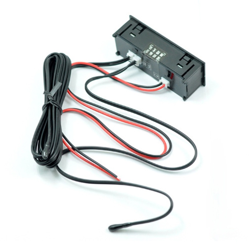 Thông số kỹ thuật: Điện áp làm việc: cho DC 5.0 ~ 27V Kích thước lỗ lắp: 19,5x56 mm Phạm vi hiển thị nhiệt độ '-35 ~ 120℃(Lỗi ±1 độ) Dải hiển thị điện áp: 5,0 ~ 28 V (lỗi ± 0,1V Chiều dài dây dẫn điện: 28CM