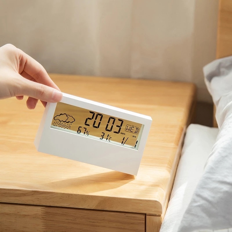 Mô tả: Thiết kế hiện đại: Vẻ ngoài đơn giản và thanh lịch rất hiện đại và thời trang. Dễ dàng sử dụng: Các nút ở mặt sau của đồng hồ báo thức có thể điều chỉnh thời gian và thao tác rất đơn giản. Thông tin như nhiệt độ, độ ẩm và ngày cũng sẽ hiển thị trên màn hình. Tiết kiệm năng lượng và bảo vệ môi trường: đèn LED tiêu thụ điện năng cực thấp, chi phí thấp, rất an toàn và tiết kiệm năng lượng, cung cấp điện số 7 pin, chức năng bộ nhớ thời gian tắt nguồn. Đồng hồ báo thức kỹ thuật số này có thể được sử dụng trong văn phòng và cũng là một món quà tuyệt vời cho trẻ em hoặc thanh thiếu niên.