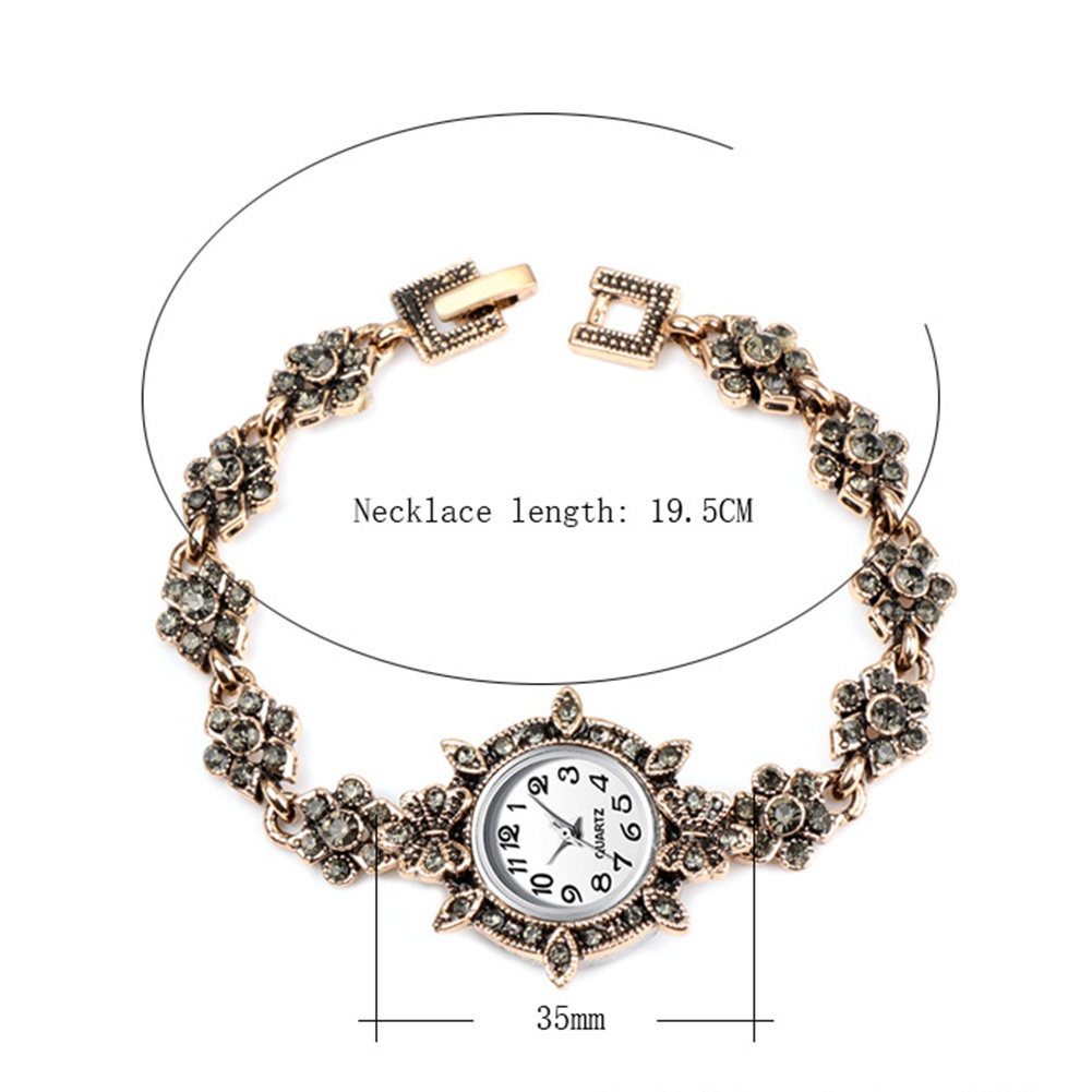 Tên khoản mục: Đồng hồ Dành cho: Phụ nữ Chất liệu ban nhạc: Hợp kim Chất liệu vỏ: Hợp kim Chất liệu gương: Kính Phong cách: Vintage Hiển thị: Analog Hình dạng vỏ: Tròn Kiểu máy: Thạch anh (Pin) Chống thấm nước: Không Nhân dịp: Cuộc sống hàng ngày, Đảng, Hẹn hò, Tiệc, Quà tặng, v.v. Các tính năng: Số Ả Rập, Dát kim cương, Bùa hoa, Bền Đường kính quay số: 4cm / 1.57 "(Xấp xỉ) Chiều rộng dây đeo: 1.5cm/0.59", chiều dài: 20cm/7.87" (Xấp xỉ)