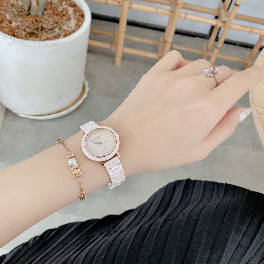 THÔNG SỐ SẢN PHẨM Thương hiệu: Julius Hàn Quốc Mã sản phẩm: JS-062 Dành cho: Nữ, sinh viên, nhân viên văn phòng, doanh nhân… Chất liệu dây: Dây đá ceramic 100% đeo mang lại cảm giác mát lạnh. Chất liệu mặt kính: Mặt kính sapphire chống trầy xước, bên trong có ánh xà cừ. Kích thước bề mặt: + Size 30 mm , dày 7,5 mm Dộ rộng của dây: 12 mm Kiểu khóa: Khóa gài Chất liệu vỏ máy: Vỏ đá ceramic Máy: Quartz Nhật JAPAN MIYOTA 2035 (thuộc tập đoàn Citizen Nhật) Khả năng chịu nước: Chống thấm nước 3ATM (30m) có thể đi mưa, rửa tay, rửa mặt. Tránh tiếp xúc với môi trường hóa chất như giặt đồ, tấm gội.